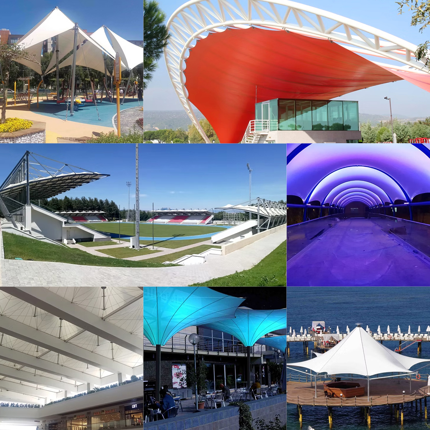 Örtülərimiz yurd xaricindən (Fransa və Almaniya) idxal edilir və tamamilə sökülüb taxıla bilər xüsusiyyətdə olan daşıyıcı polad sistemlərimiz ST 37 keyfiyyətində qara poladdan emal edilməkdə və örtmə olaraq isti daldırma galvaniz və ya boya tətbiq edilməkdədir. İstəyə bağlı olaraq inoks (paslanmayan polad) istehsallarımız da mövcuddur.